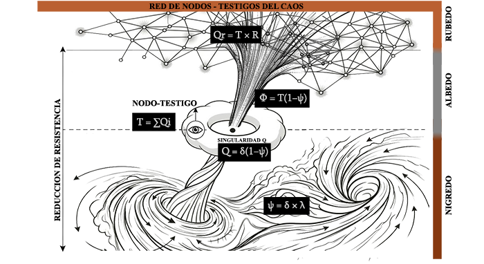 Nigredo, el Derrumbe: Nigredo no es la pérdida del ser, sino la renuncia a la ilusión de voluntad. Es la fase de fricción e identificación con la perturbación donde el Yo queda atrapado en el obstáculo.